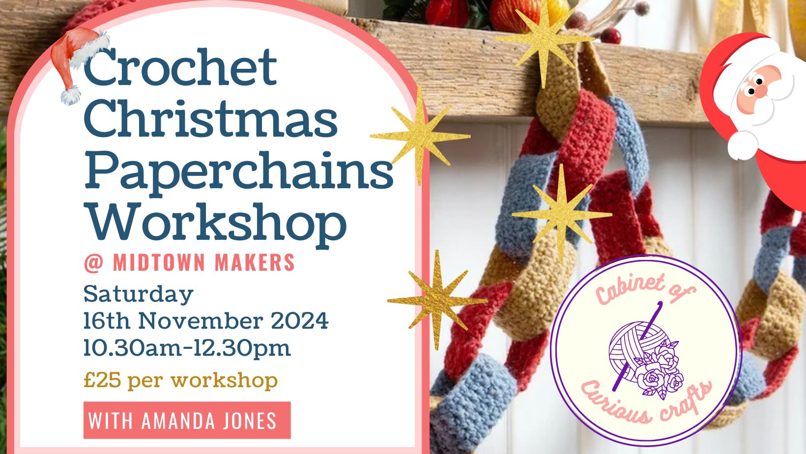 Get into the festive spirit, and join me for Crochet Christmas Bunting workshop, perfect for those who love to crochet and want to create unique seasonal home decor. Get ready to unleash your creativity and feel festive! Date: Sat 11th November 2023 Time: 10:30am Location: Midtown Makers, Ballymena