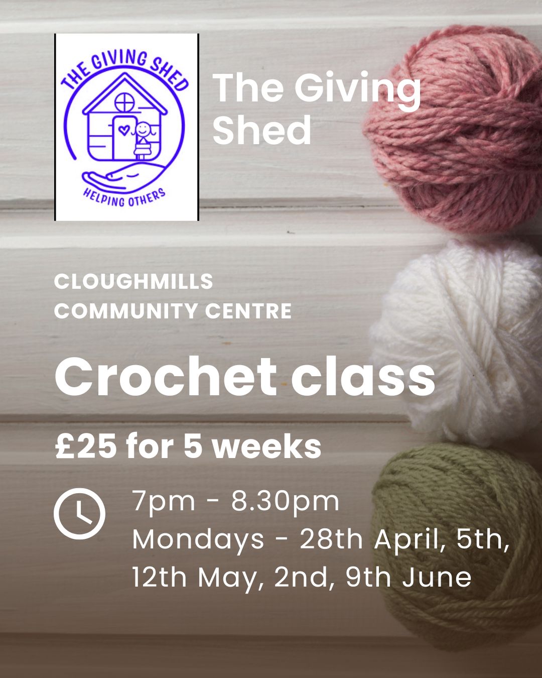 Take your first or next steps in crochet with this 5 part beginners course. Learn how the stitches and grow your skills. Date: Monday 3rd, 10th, Tues 18th, Mon 24th, 31st March 2025 Time: 7pm – 8.30pm Location: Cloughmills Community Centre, NI