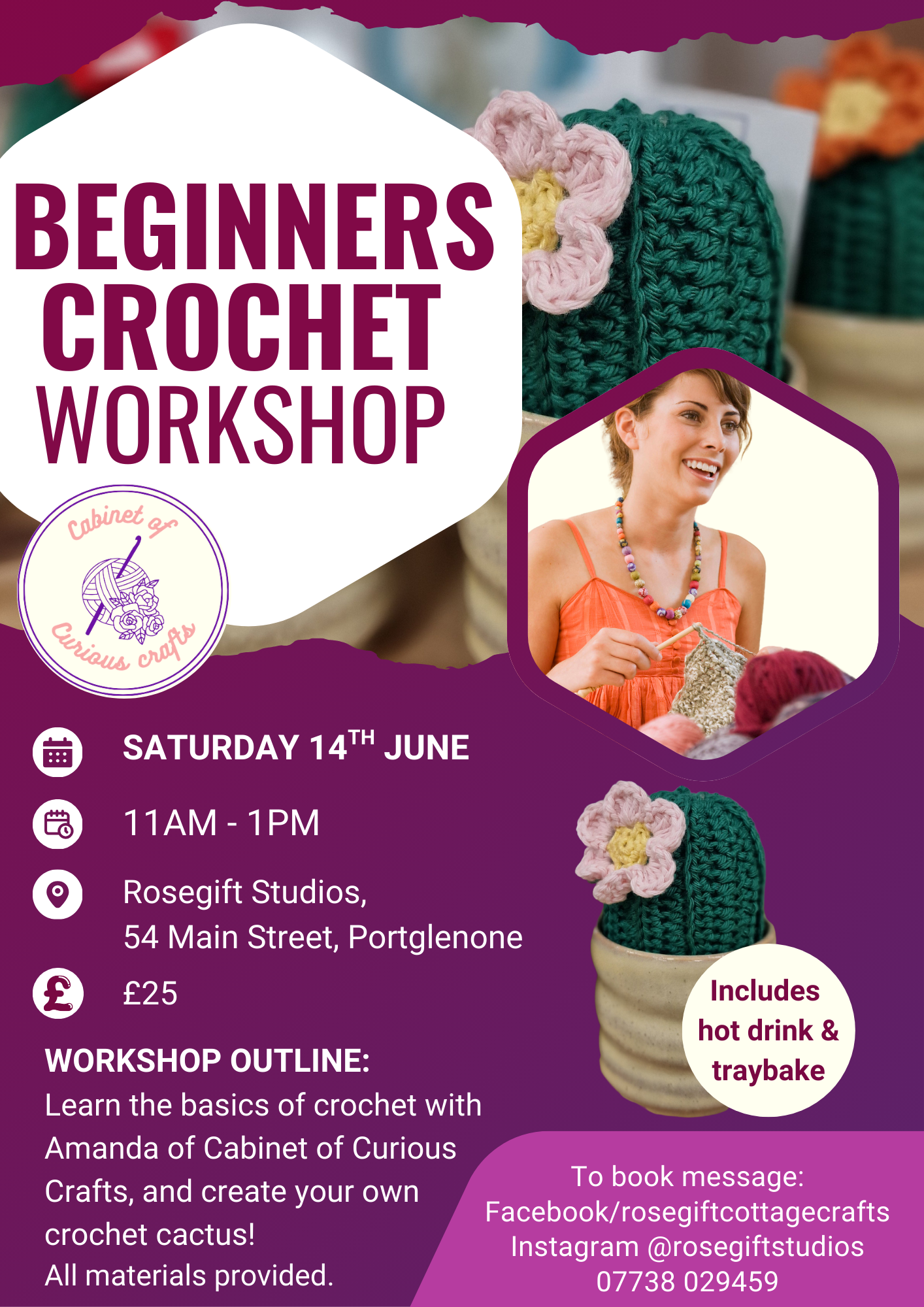 Join me for a Beginners Crochet workshop at Rosegift Studios, Portglenone to make a crochet cactus. DATE: Saturday 14th June, 11am -1pm.